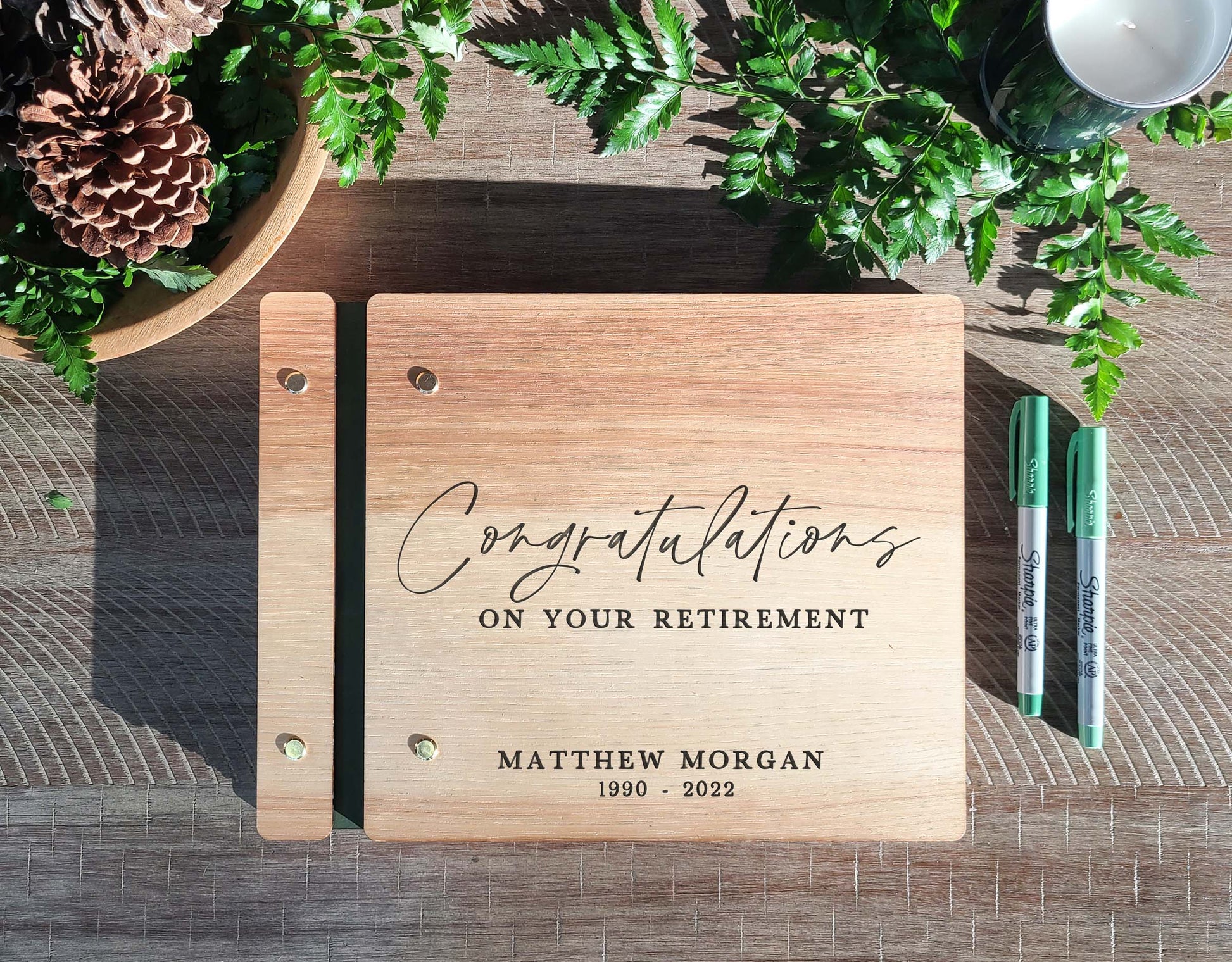 Retirement Guest Book - Personalized Wooden Keepsake for Coworker